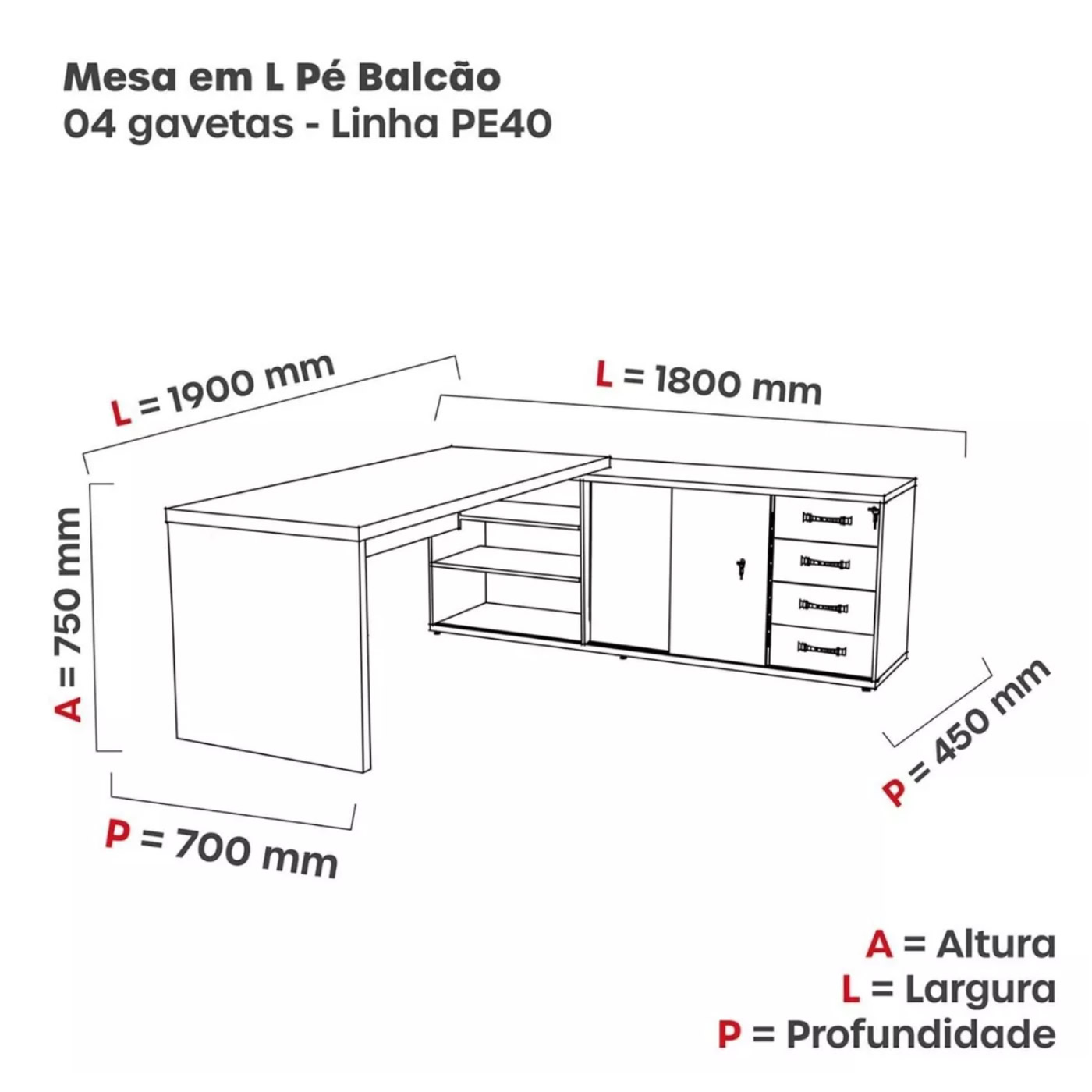 Mesa para Escritório em L Diretor Pandin MPB04GPE40TUB ESP216